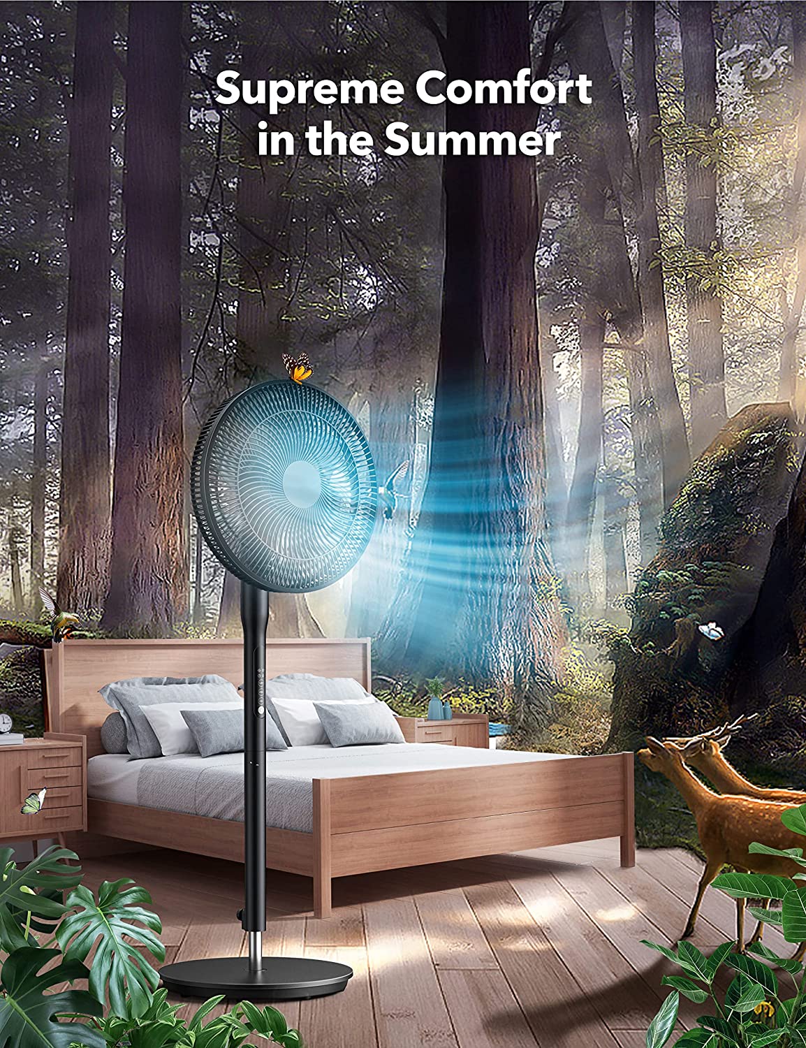 可调速度,风速可在3种不同模式(正常、自然和睡眠)下自定义,正常模式下分别有9种速度可用。与典型的三叶风机相比,设计有7个叶片,以较低的噪音产生柔和、宽范围的气流。