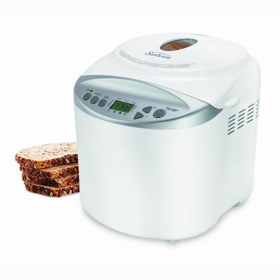 Sunbeam 2磅可编程面包机新低+包邮!带无麸质设置 直接到官网购买 亚马逊现有Sunbeam2磅可编程面包机新低+包邮! 2磅面包容量 快速烘焙 13种面包设置,包括无麸质设置 13小时可编程延迟烘烤定时器 包括带有食谱的说明书 带量杯和勺子 到官网查看详情并购买