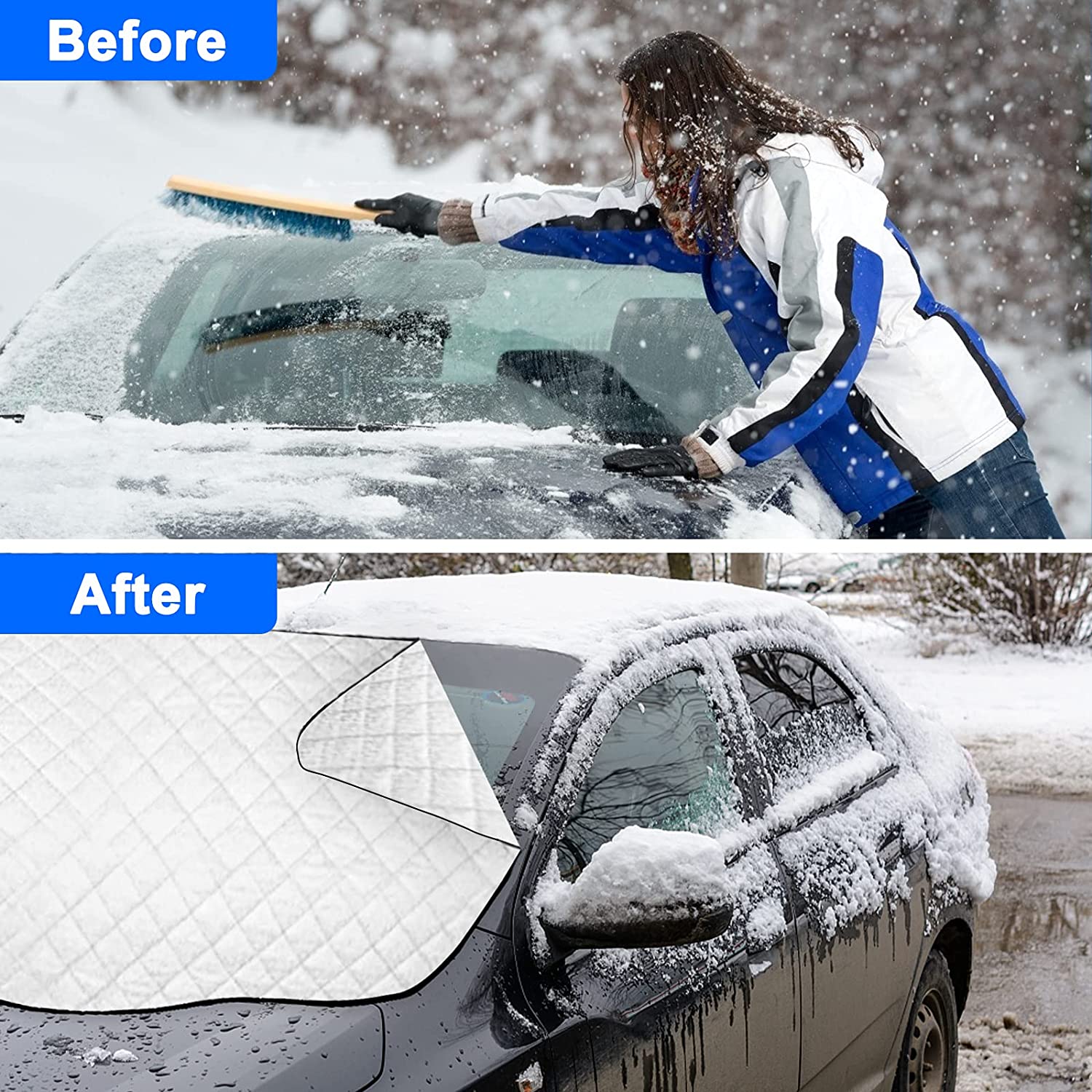 冬季为您的汽车提供完美保护:最新的Kekilo挡风玻璃雪罩可以保护您的汽车免受雪、冰、雨、雪、冰雹、风暴和刮伤的影响,为汽车挡风玻璃和双面镜提供完美保护。