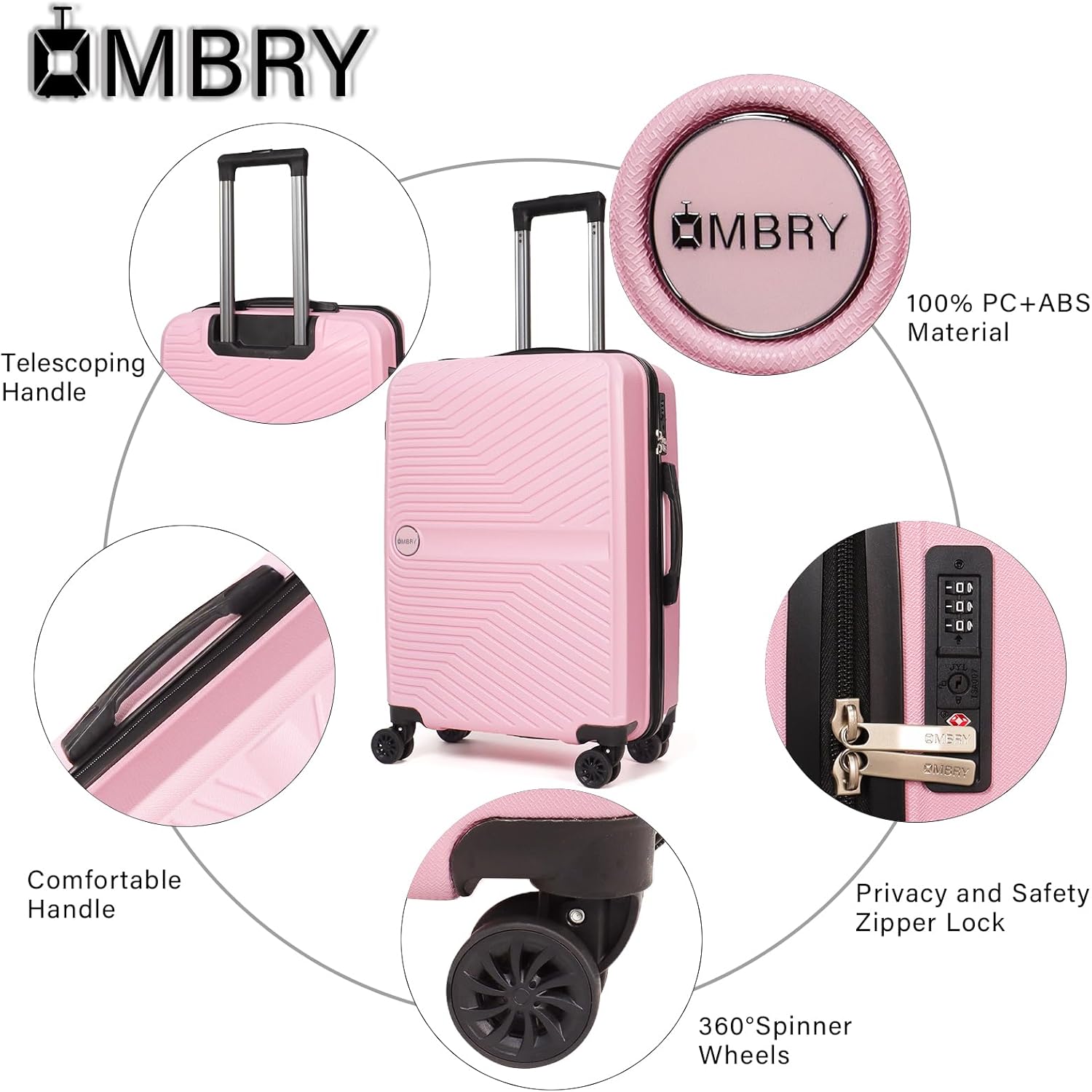 嵌入式 TSA 锁和旋转轮, 360° 双轮设计让您更容易控制您的手提箱套装,带轮子的行李箱可以满足您各种旅行的需求