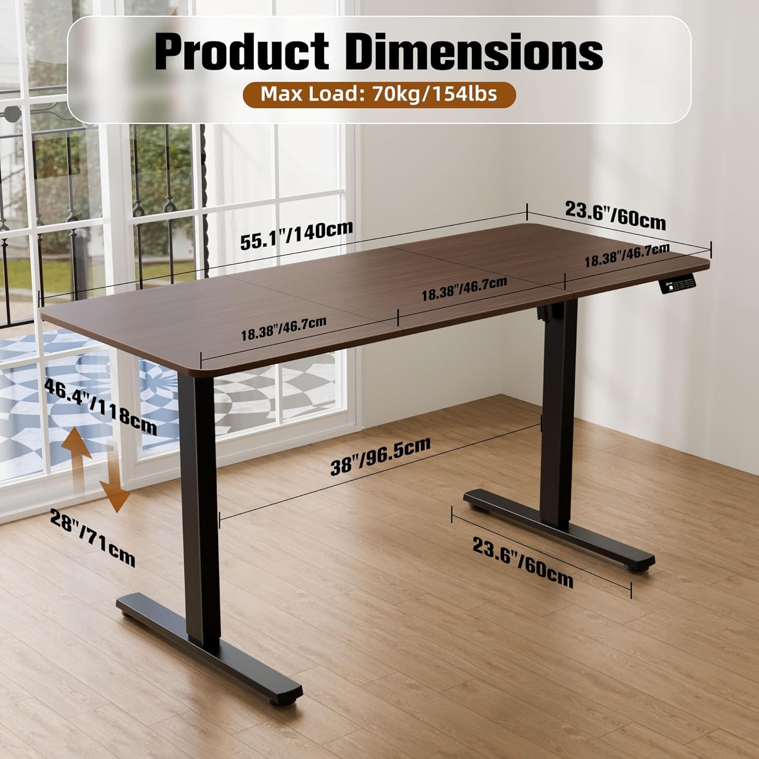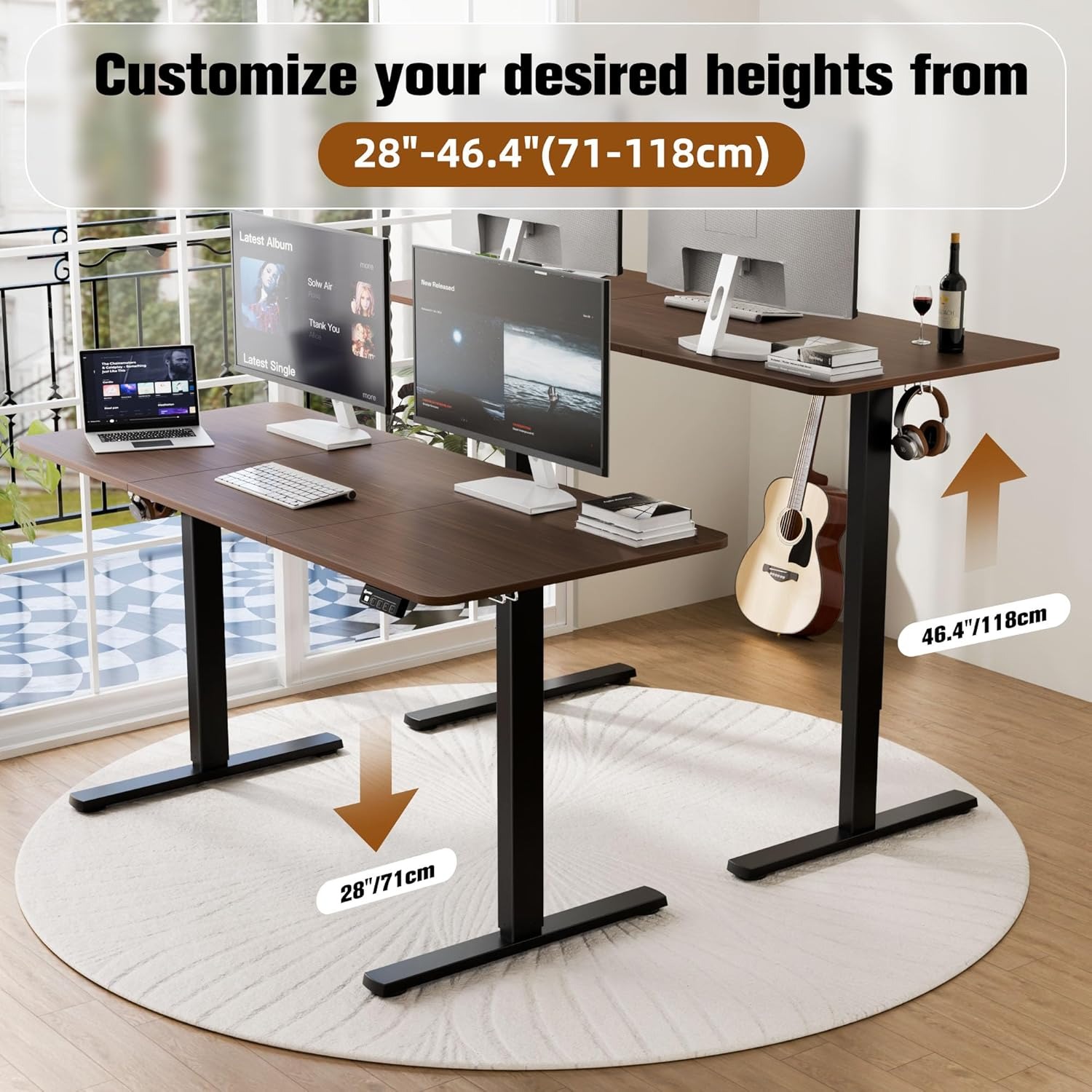 配备强劲电机和两段式支腿,只需轻触按钮,几秒钟内即可在坐姿和站姿之间切换!可在28英寸(71厘米)至46.4英寸(118厘米)之间调节高度。合适的办公桌高度可确保保持正确的人体工学姿势。