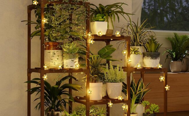 亚马逊现有 Bamworld 配备花仙子防水灯 天然碳化木制植物架/花盆架特卖+包邮! 另外一款 不带花仙子防水灯的也在特卖中! 配备花仙子防水灯,适合室内外使用。灯由3节AA电池(不包含)供电,可连续照明长达5小时。 采用梯形设计,