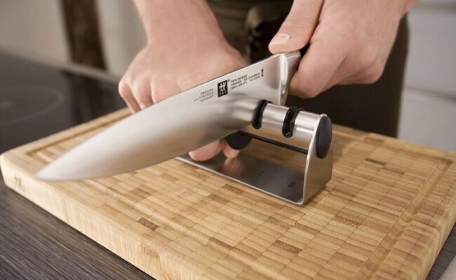 亚马逊现有双立人 ZWILLING J.A. HENCKELS 2段式不锈钢磨刀器特卖+包邮 ! 精美不锈钢材质,提供绝佳的磨刀体验 粗磨刀槽可将钝刀快速打磨 精磨刀刃去除刀刃细小毛刺 磨刃之后清洗简单,光洁如新 底盘有橡胶防滑垫 不