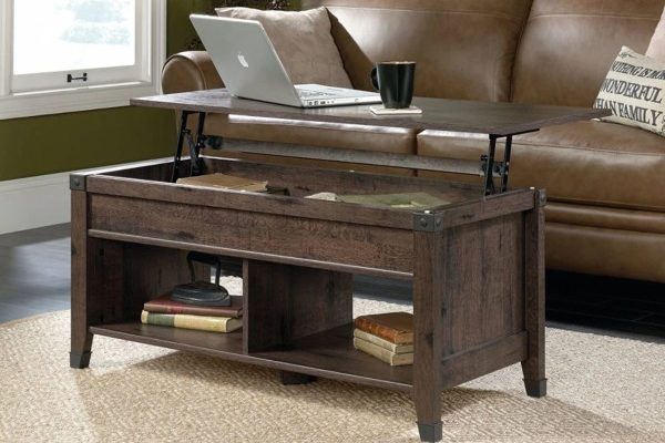 亚马逊现有Sauder 咖啡桌+电脑桌+茶几+收纳桌4合一特卖+包邮! 美国品牌 易于组装。非常坚固 颜色沉稳大方 平时是咖啡桌茶几,但打开后,里面可以放置东西,顶部可以升起成为电脑桌 4合一设计超好用