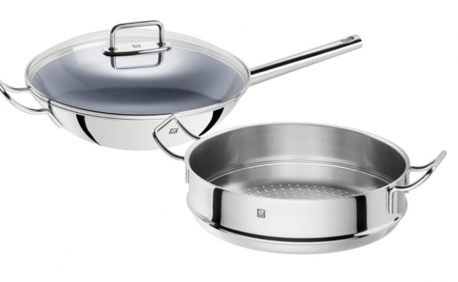 双立人 Zwilling 官网现有顶级不锈钢 PLUS 炒锅+蒸锅多功能三件套5折特卖 原价 $260.00 现价 $ 129.99 首次购买用户注册后可获得额外9折优惠码 满99包邮! 多功能的双立人PLUS炒锅+蒸锅套装可分可