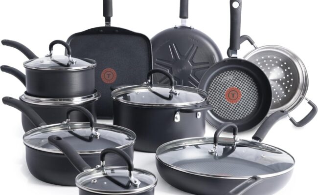 亚马逊现有 T-FAL 终极硬质阳极氧化 17件套 红点不粘锅具套装特卖+包邮! 采用坚固耐用的硬质阳极氧化材质,搭载T-fal独有的控温系统,确保每次烹饪都能获得完美美味。 不粘内层,耐刮擦经久耐用,并确保食物在表面顺畅滑动,让烹饪