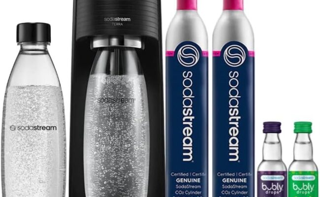 亚马逊现有 SodaStream Terra 气泡水/苏打水机 + 2气瓶 套装特卖+包邮! 这款小巧神器可在几秒钟内将饮用水变为苏打水~ 在家可以轻松制作各种风味的气泡水~ 只需按下按钮即可制作新鲜的苏打水, 再配上不同风味的滴剂和