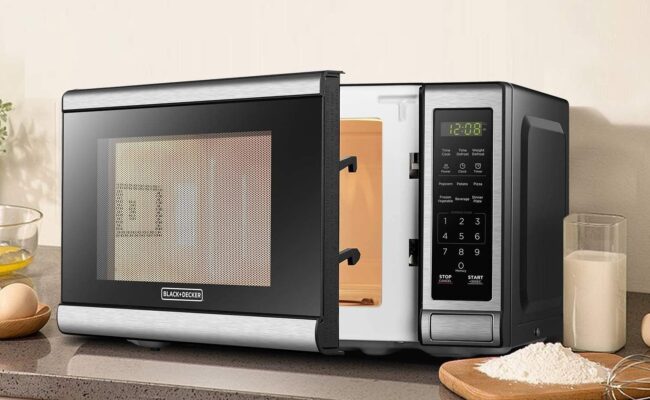 亚马逊网店现有 BLACK+DECKER EM720CB7 700瓦 0.7Cu.ft 数字不锈钢微波炉特卖+包邮! 预设6种功能按钮,包括爆米花、土豆、披萨、冷冻蔬菜、饮料和餐盘 700瓦,具有10级功率设置、时钟和厨房定时器,30