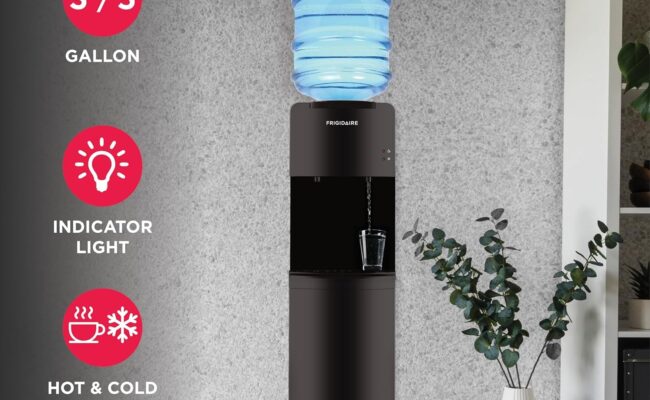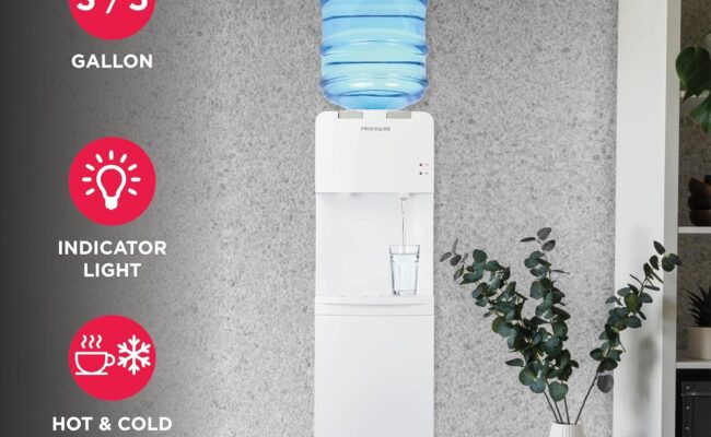 亚马逊网店现有 Frigidaire EFWC498 时尚纤薄 冷热两用 饮水机特卖+包邮! 独立式设计,时尚纤薄,节省空间,适合各种空间,无论是居家、厨房、办公室、宿舍等等,都能轻松融入。 顶部装载供水桶,可轻松观察水位。兼容3加仑