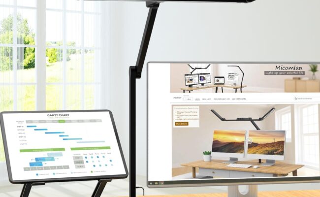 亚马逊网店现有 Micomlan 24瓦 带可旋转摇臂和底座的 LED护眼台灯特卖! 需点击coupon 【5 个可旋转接头】这款可旋转 LED 台灯专为提高工作效率而设计,配备 5 个可旋转接头,完全掌控照明方向和高度。可以垂直旋转