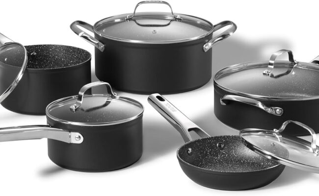 亚马逊现有 Starfrit The Rock 岩石般质感 不粘锅具10件套装特卖+包邮! Starfrit The Rock是唯一采用独家Rock.Tec制造工艺的炊具系列。这种独特的表面处理工艺能够改变炊具表面,形成超耐用的岩石般