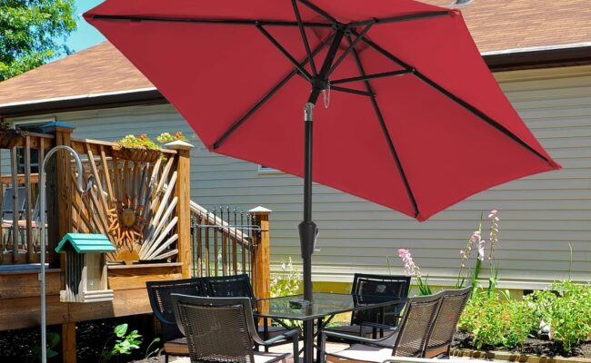 亚马逊网店现有 MUCHENGHY 7.5英尺 角度可倾斜 庭院遮阳伞/桌伞+包邮! 配有防锈铁质主中心杆和6根坚固的铁伞骨,经久耐用,提供更强劲的防风支撑。注意:不含配重底座 防水透气、防紫外线,双缝加厚伞面采用耐用涤纶面料,防晒、