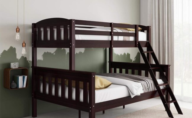 亚马逊网店现有 DHP Airlie Twin Over Full 实木双层床特卖+包邮! 采用实木结构,打造稳固的平台床架,配备坚固易攀爬的斜梯和13英寸护栏。光滑喷漆表面。 上铺是Twin标准单人床,下铺是Full标准单人床,节省