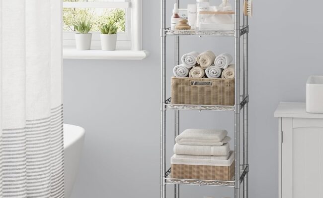 亚马逊现有 SONGMICS 5层 储物架/植物架/浴室架特卖+包邮!带4个可拆卸挂钩! 设计紧凑,节省空间,仅占11.8英寸x 11.8英寸的空间,但提供5层存储空间 搁板由优质粉末涂层钢制成,坚固稳定,每层可承重44磅; 高度可调