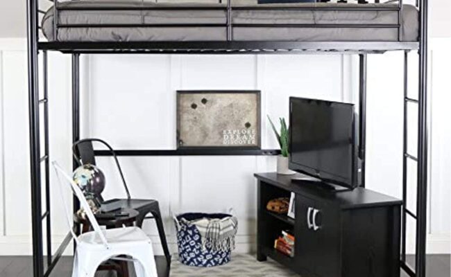 亚马逊网店现有 Walker Edison Orion Urban Double 金属床架特卖 + 包邮! 这个金属钢管框架床结实耐用,上层为标准的Full 无需床盒,直接放床垫即可,建议床垫厚度为8“-9” 下层空间可以放书桌、椅子