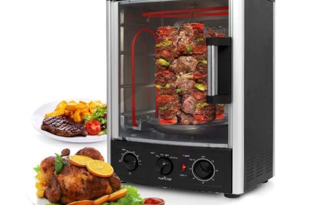亚马逊现有NutriChef 多功能可垂直烤肉机/烤箱特卖+包邮!土耳其烤肉神器,可串烤整只鸡 24夸脱大容量 多功能烤箱,2层烤架可用于烘培、可炙烤、 还可垂直烤土耳其烤肉,串烤整只鸡等 可安全放置在任何餐桌或台面上,高功率加热元件
