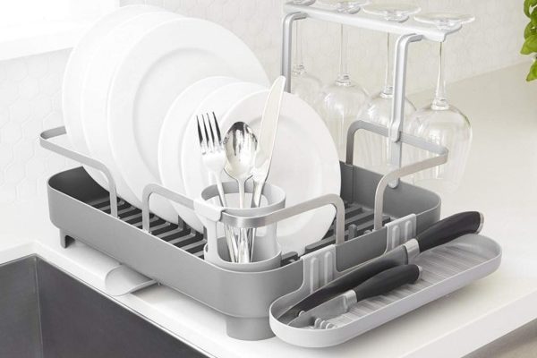 亚马逊现有Umbra 多功能大容量沥水篮特卖+包邮!厨房好帮手! 使用这款功能强大的沥水篮轻松整理餐具,并且可将高脚杯和杯子挂起来晾干。 专利设计,材料安全无毒,耐用且易于清洁。 可容纳15个盘子,包括器具存放器,可移动的高脚杯架和适