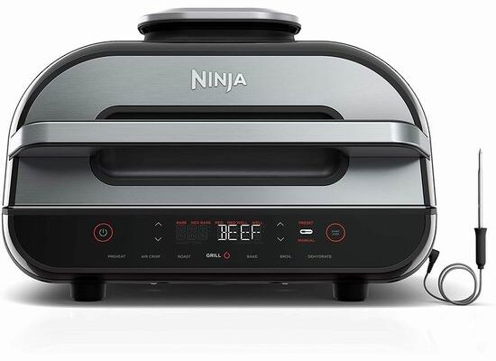 亚马逊现有 Ninja FG551 Foodi Smart 加大容量 6合1 智能无烟烧烤炉/空气炸锅特卖+包邮! 这款 6合1 智能无烟烧烤炉/空气炸锅,集烧烤、烘培、烤、炙烤、空气炸锅、食物脱水功能于一身,特别方便好用,大容量可同