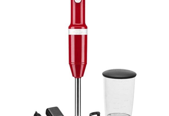 亚马逊现有 KitchenAid 8英寸无绳变速手持搅拌器/料理棒特卖+包邮! 20分钟快速充电,2小时或更短的时间全部充满, 无绳手持操作特别方便 带充电提示,方便省心 可拆卸的8英寸搅拌臂采用4点不锈钢刀片设计,可有效搅拌冰沙、
