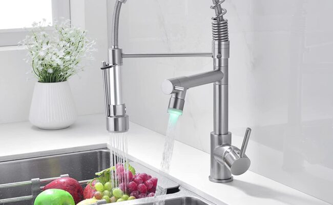 亚马逊现有Avola 时尚拉丝不锈钢厨房水龙头/下拉式水龙头特卖+包邮!带LED防止水温过高或过冷! 需点击coupon 这款厨房双龙头,采用优质黄铜材质制成,高拱形喷口设计, 360度旋转,下拉式厨房水龙头为各种水槽活动提供更多空