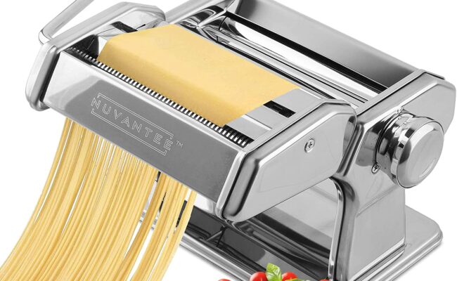 亚马逊现有Nuvantee 意大利面条机特卖!7种面条粗细可调 非会员满35包邮 这台意式面条机由不锈钢制成,使用方便,有七种不同面条厚度的附件可选,包括千层面、饺子皮等等。 光滑、可调节和可清洗的切刀辊都带有按扣,制备意大利面很简单
