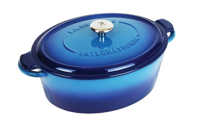 亚马逊现有 双立人 Zwilling J.A. Henckels 椭圆形铸铁珐琅锅特卖+包邮!4.5夸脱,蓝色 4.5夸脱,可做砂锅菜和炖肉,炖菜,也可在烤箱中及电磁炉上烹饪。珐琅材料杜绝食物与锅体产生任何化学反应,抗酸碱,可直接储藏