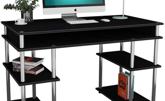 亚马逊现有DlandHome 带搁板多功能电脑桌办公桌写字台特卖+包邮! 黑色(120 x 60cm)或 橡木色(120 x 40cm) 两种颜色尺寸可选! 组装方便:不需要任何螺丝 健康优质,宽大的桌面和宽敞的空间提供舒适的工作空间