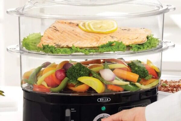 亚马逊现有BELLA 大容量7.4夸脱双层电蒸锅特卖+包邮! 7.4夸脱大容量 ,两个独立的蒸箱,可以单用也可以堆叠使用 带定时器,有自动关闭和干烧保护功能 配件洗碗机安全