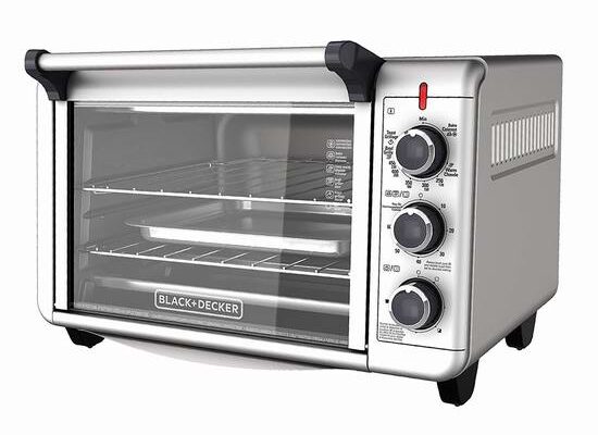 亚马逊官网现有BLACK+DECKER 6片不锈钢对流电烤箱特卖+包邮! 不锈钢外观烤箱,对流加热设计食物受热更均匀更快速 大空间可以轻松放进12英寸披萨,六片面包,整鸡 60分钟定时器,带碎屑盘 伏特:120V