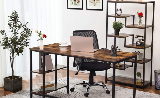 亚马逊现有HOOBRO 金属框架时尚电脑桌/办公桌特卖+包邮! 新一代工业风格:厌倦了旧风格的电脑桌,可以试试这款工业设计全新复古风格,金属框架稳固耐用 大桌面,可以同时放置2台电脑,尺寸为55.1“L X 23.6”W X 30.1