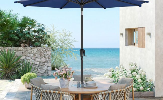 亚马逊现有SONGMICS 9英尺角度可倾斜遮阳伞/桌伞特卖+包邮! 户外保护:这款庭院伞的180 g/m²聚酯纤维面料具有UPF 50+评级, 可阻挡98%的紫外线,帮助你不被晒伤 角度可根据阳光变化倾斜,组装简单,加固8根矩形伞骨