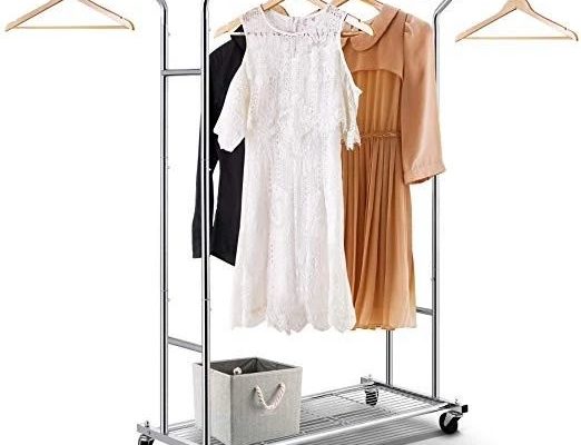 亚马逊现有AmazonBasics 双层可移动式挂衣架特卖+包邮! AmazonBasics 是亚马逊自有品牌,质量可放心 双导设计,后面高前面低,便于挂衣服 横梁可延长从50.4 69.3英寸宽; 每个轨道可容纳多达110磅; 最大